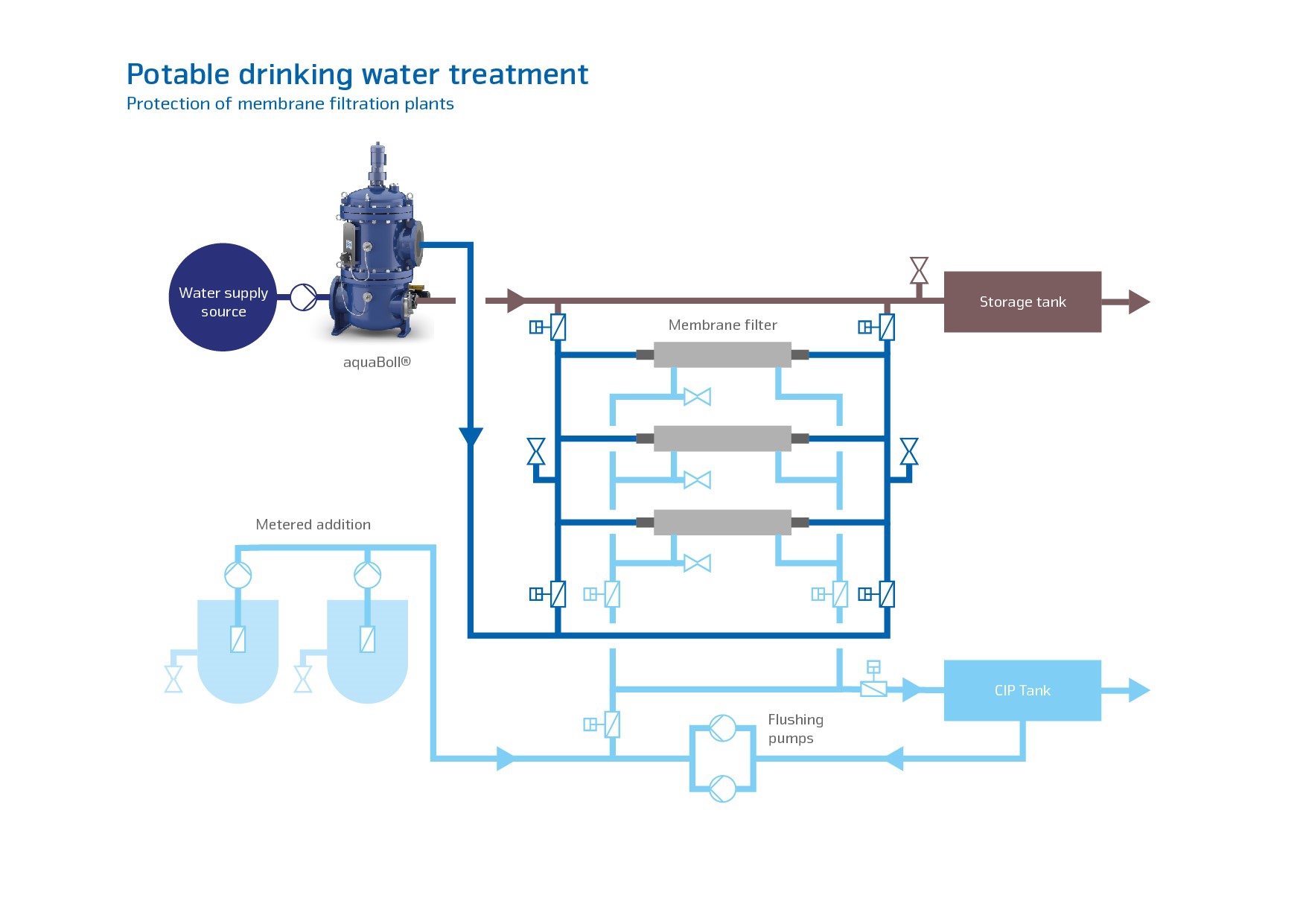 Dans les usines d'eau potable, la durée de fonctionnement des installations à membrane peut être ainsi prolongée grâce à une pré-filtration avec BOLLFILTER.