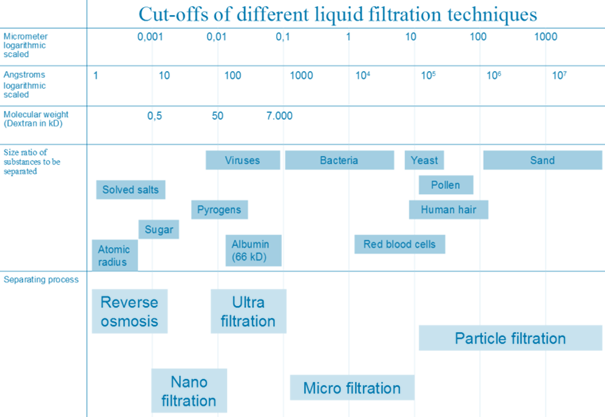 When it comes to membrane filtration possibilities, membrane filtration is typically categorized into four widely recognized types, based on the size of particles they are designed to separate from the feed liquid. These types, arranged by increasing pore size, are reverse osmosis, nanofiltration, ultrafiltration, and microfiltration.