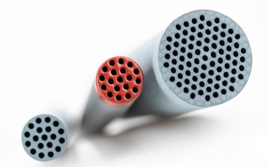 Silicon carbide (SiC) is among the hardest materials in the world. Our SiC ceramic membrane technology provides extreme durability combined with mechanical robustness. The material also stands for the highest flux, high permeability as well as a high level of hydrophilicity (water-loving material). Add to this it is resistant to corrosion too.