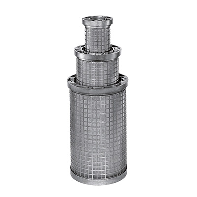 The multi-mantle filter element consists of several cylindrical screen jackets. These provide a large filter surface with a small footprint and allow the use of fine-mesh screen cloth. Filtration takes place from the outside to the inside, allowing you to filter out solid particles with a filtration fineness of 2 mm to 10 µm. A stainless steel wire mesh is used as the filter medium.